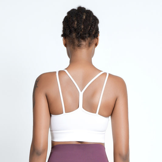 Nude Feel Cross Backless Bra Shockproof Push up High Elastic Sports Underwear Sexy Shaping Yoga Bra